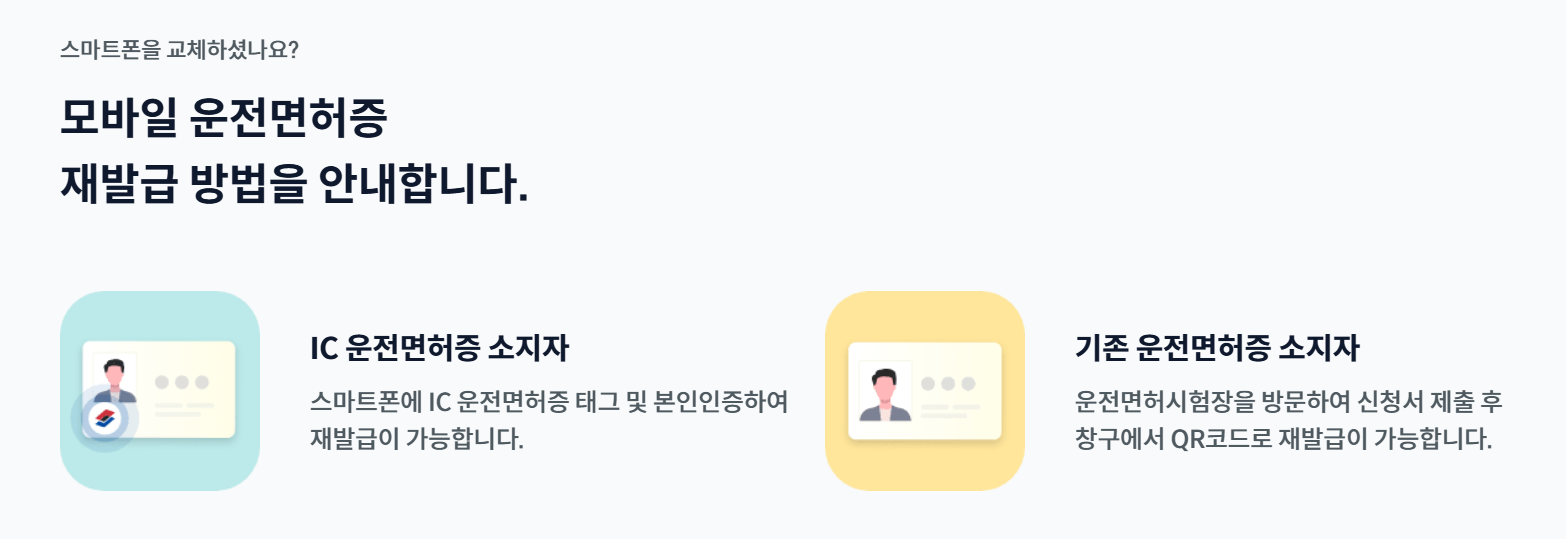 모바일 운전면허증을 분실하거나 스마트폰을 변경한 경우 재발급이 필요합니다.