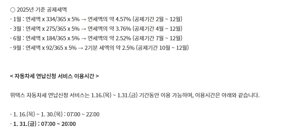 1월 연납: 1월 1일부터 1월 31일까지. (할인율 약 10%)