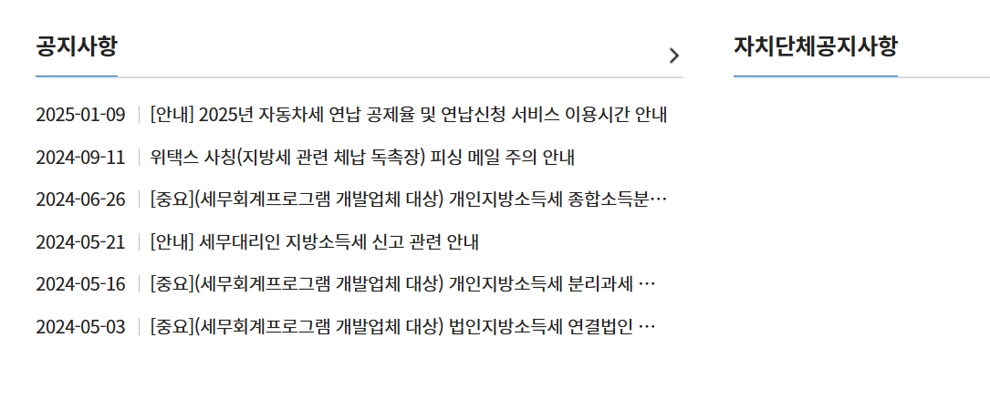 위택스(Wetax): 전국 지방세 포털 서비스.