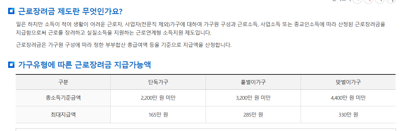※ 2024년 하반기 근로장려금 신청자격