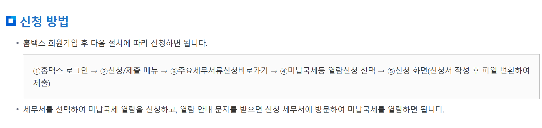 홈택스 신청 후 세무서 방문하여 미납국세열람 신청