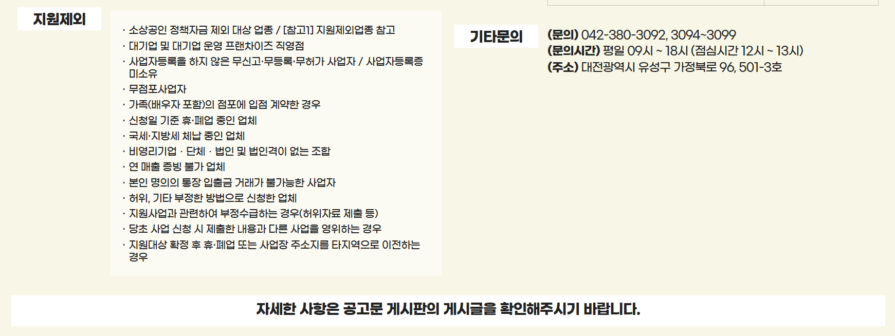 ❌ 대기업 및 대기업 운영 프랜차이즈 직영점 ❌ 사업자등록을 하지 않은 무신고·무등록·무허가 사업자 ❌ 무점포 사업자