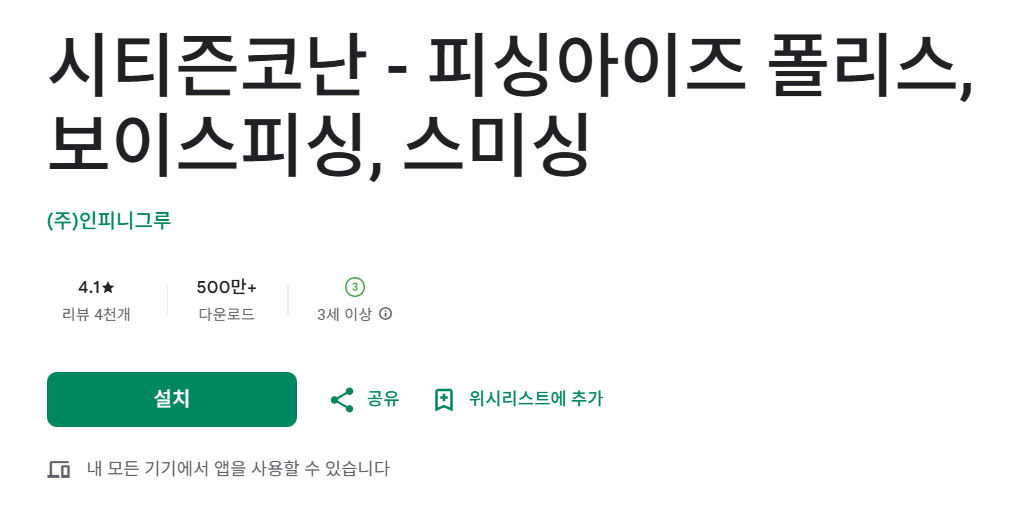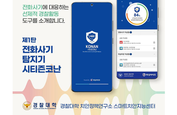 경찰대학 치안정책연구소와 민간 보안기업 ㈜인피니그루가 공동 개발하고, 경찰청이 직접 운영하는 국내 유일의 보이스피싱 민·관 공동대응망 서비스입니다. 과거 ‘피싱아이즈 폴리스’라는 이름으로 알려졌던 이 앱은 현재 ‘시티즌코난’이라는 명칭으로 변경되어 운영되고 있습니다.