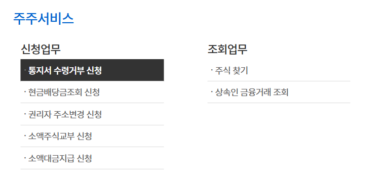 미수령 주식 찾기 서비스 바로가기