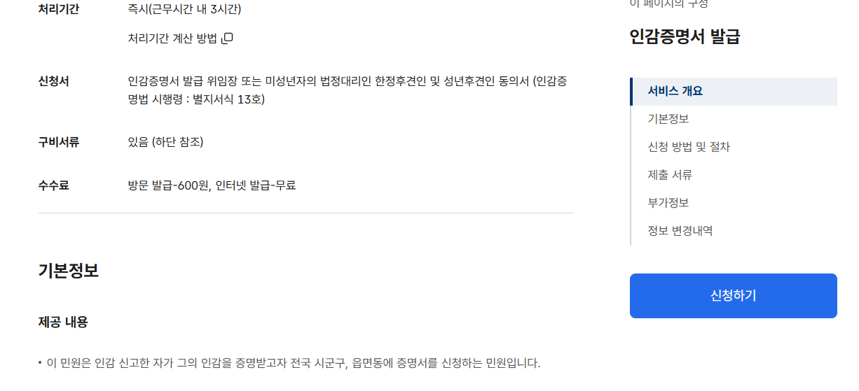 인감증명서 발급 | 민원안내 및 신청 | 정부24