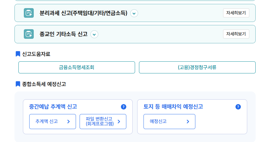 - '신고/납부' 메뉴에서 '종합소득세' 선택