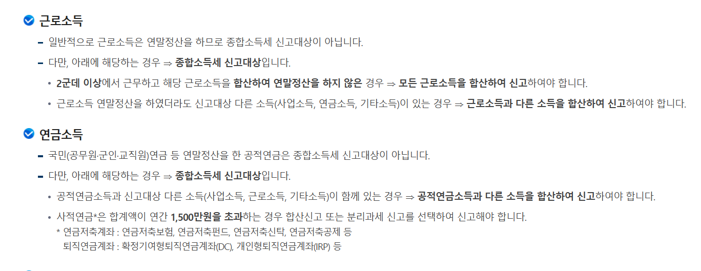 - 연금소득이나 기타소득 등 종합과세가 필요한 자