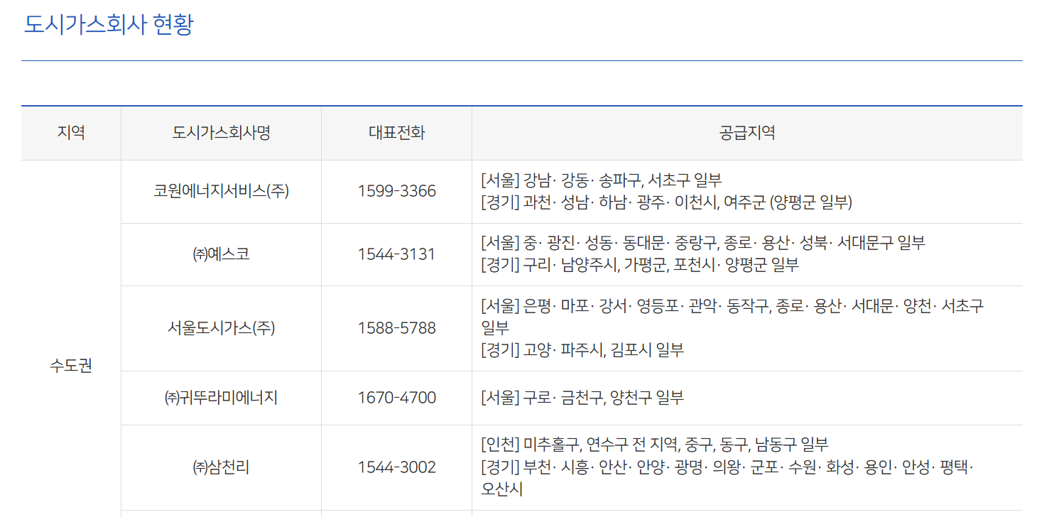 - 한국지역난방공사나 지역 도시가스 공급업체를 통해 도시가스를 사용하는 일반 가정