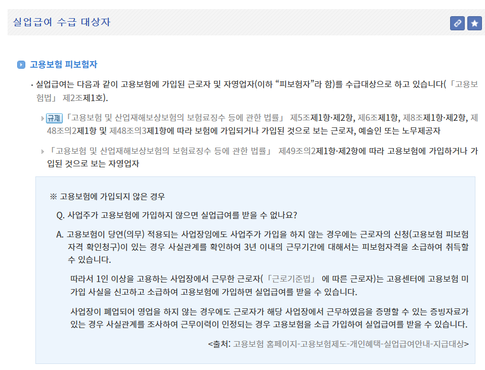 - 자발적 퇴사가 아닐 것 (즉, 회사의 경영상 이유 등 비자발적 사유)