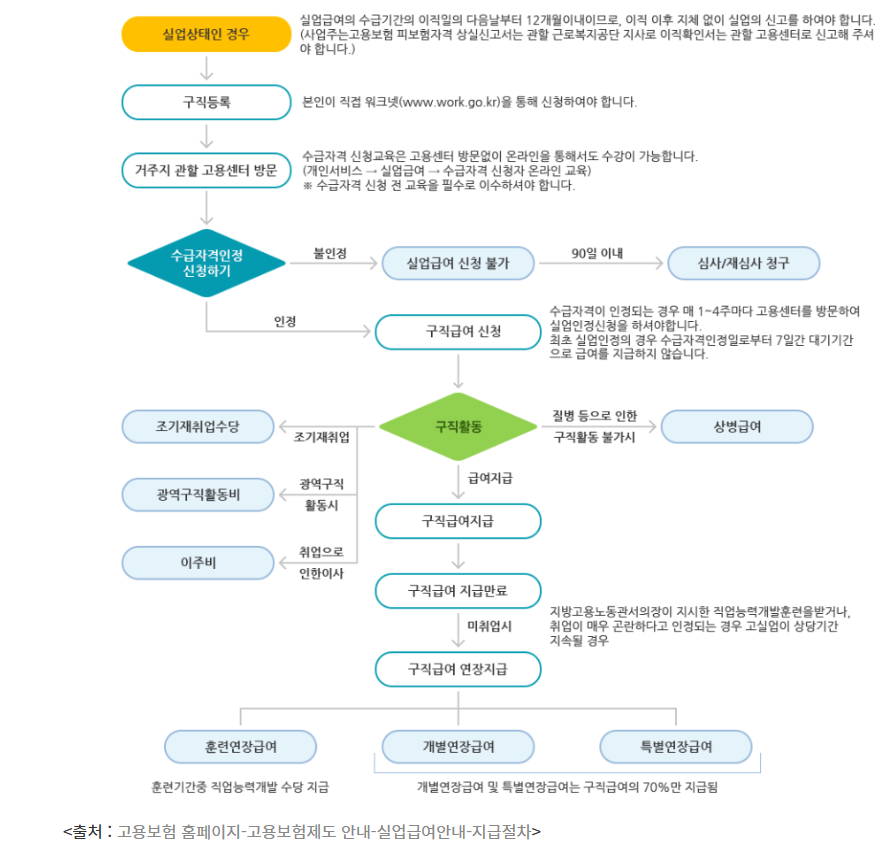 - 고용센터 실업인정일에 온라인 또는 오프라인으로 보고