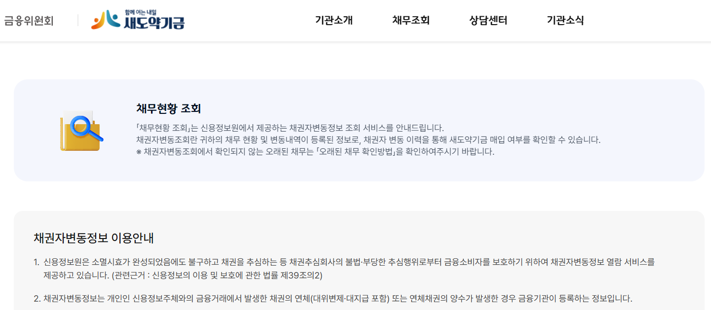 새도약기금을 신청하기 전에 가장 먼저 해야 할 일은 ‘대상자 조회’입니다. 이 과정을 통해 본인이 실제로 지원 요건을 충족하는지, 채무조정이 가능한지를 확인할 수 있습니다. 대상자 조회는 온라인으로 간단히 진행할 수 있으며, 신용정보를 기반으로 자동 판별됩니다.