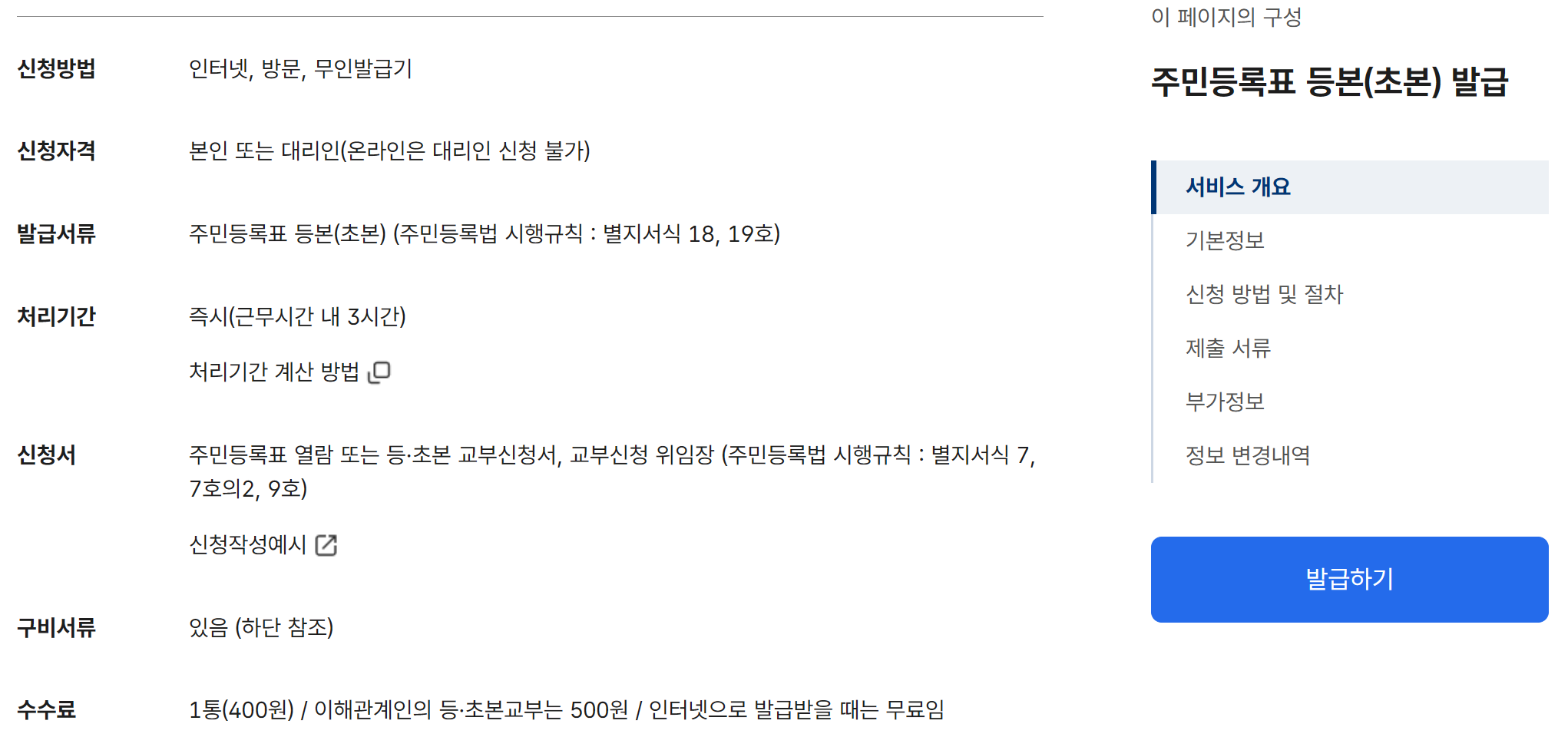 민원24시 주민등록등본 무료발급 바로가기